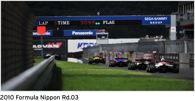 富士スピードウェイで行われたフォーミュラ・ニッポン第3戦は、1day開催となり、土曜日にフリー走行が2回、日曜日の午前中に予選、午後に決勝というスケジュールでした。土曜日のフリー走行で、予選、決勝のマシンセッティングを確認するためにチームとスケジュールを組み、走行しました。そして日曜日のレースに臨んで行きました。