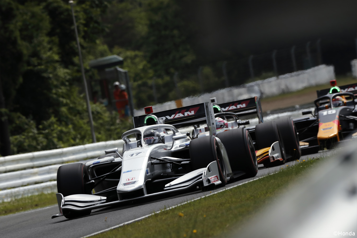 スーパーフォーミュラ第3戦は宮城県のスポーツランドSUGOで行われました。金曜日のフリー走行は、まずまずの走り出しでした。僕にとってスポーツランドSUGOは昨年9月に実施された開発テストでSF19をドライブした唯一のコースだったこともあり、いい感触をつかめました。しかしソフトタイヤではマシンバランスの変化が大きく、セットアップの修正が必要でした。土曜日のフリー走行でもいくつかのセットアップを試しましたが思うように進まず、金曜日のセットをベースに予選セットを考えました。